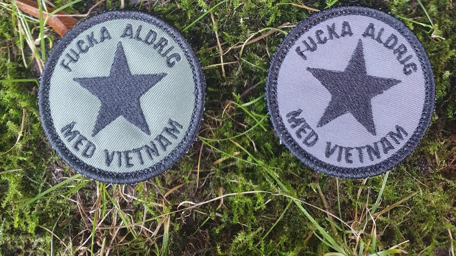 Broderat tygmärke/patch. 2 olika varianter; svart text, motiv & kant på grått tyg och svart text, motiv & kant på grönt tyg. Kardborre, hane (hook). Tyget heter Twilly och går alldeles utmärkt att tvätta. Tråden består av 100% polyester.