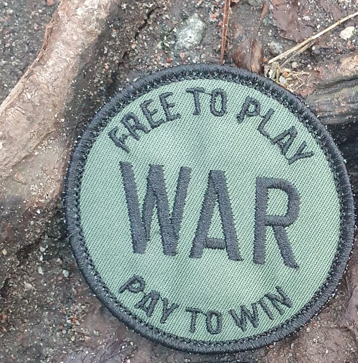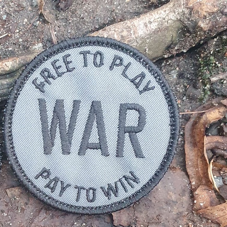 Broderat tygmärke/patch. 2 olika varianter; svart text, motiv & kant på grått tyg och svart text, motiv & kant på grönt tyg. Kardborre, hane (hook). Tyget heter Twilly och går alldeles utmärkt att tvätta. Tråden består av 100% polyester.